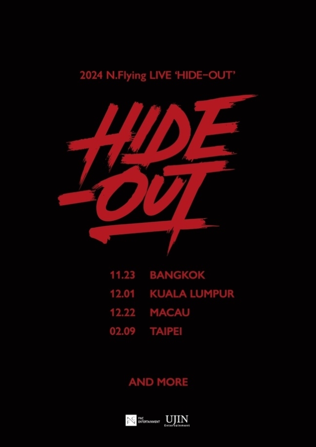 According to the teaser poster, N.FLYING will hold "2024 N.Flying LIVE HIDE-OUT" in ASIA in a total of four cities, starting with Bangkok on November 23, Kuala Lumpur on December 1, Macau on December 22, and Taipei on February 9 next year. In addition to the announced cities, host regions will be added in the future.